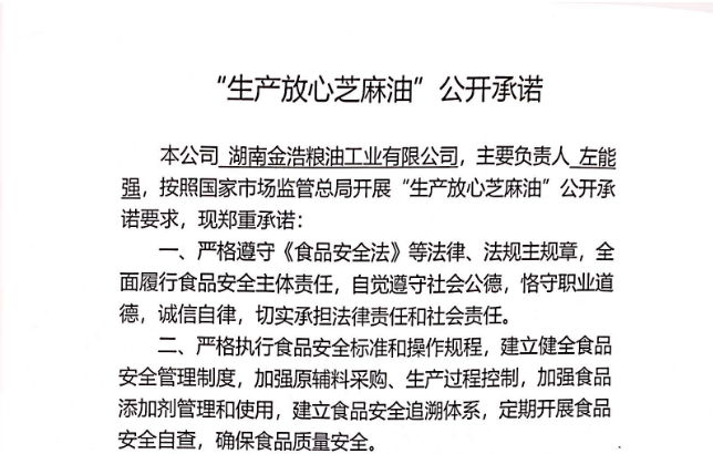 關(guān)于“生產(chǎn)放心芝麻油”的公開承諾。...